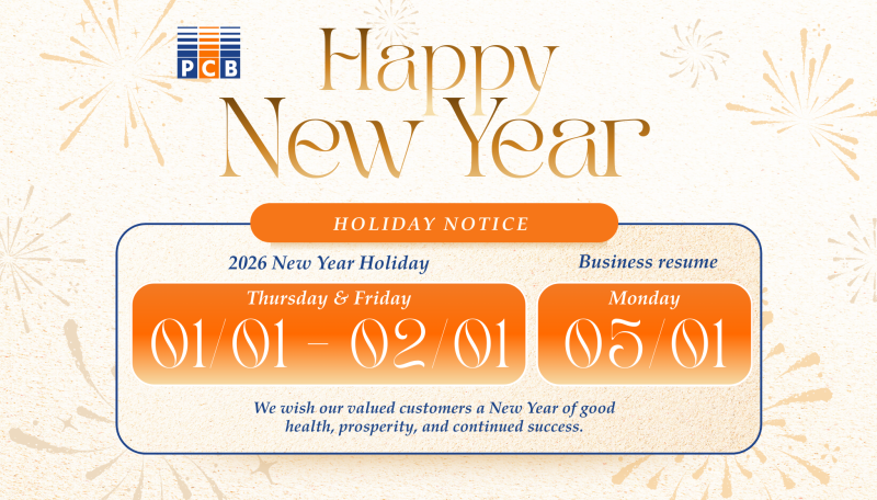 For your information, PCB would like to announce our 2026 New Year Holiday schedule as follows: