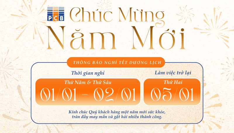 Để thuận tiện trong kế hoạch làm việc giữa PCB và Quý khách hàng, PCB xin thông báo lịch nghỉ tết Dương lịch 2026 như sau: